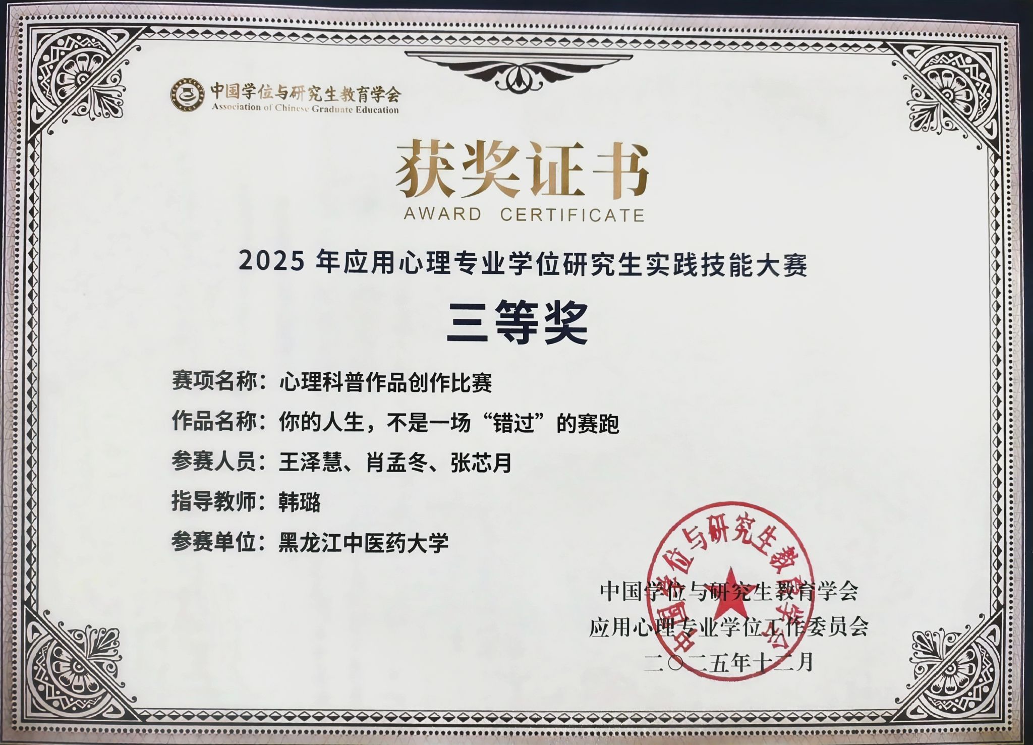 喜报丨我院研究生团队荣获2025年全国应用心理专业学位研究生实践技能大赛三等奖