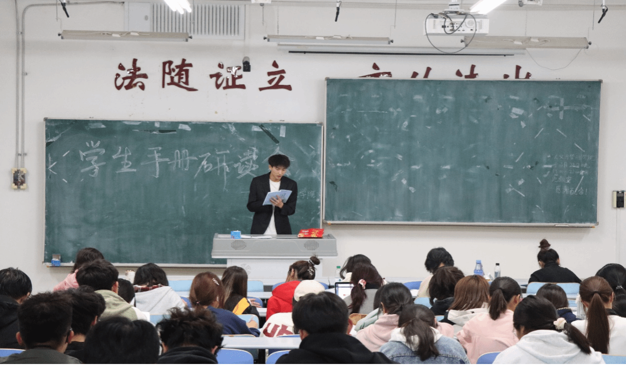 9月23日,学院辅导员组织新生集中学习《黑龙江中医药大学学生手册》中有关寝室用电、防火、防震等安全要求。