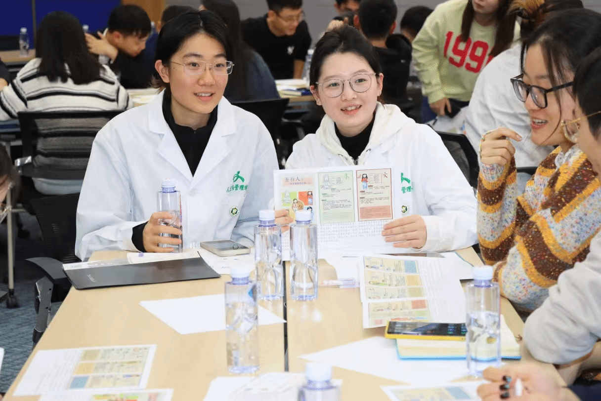 学生志愿者通过制作的中医心理学“五行人”知识手册普及身心健康知识