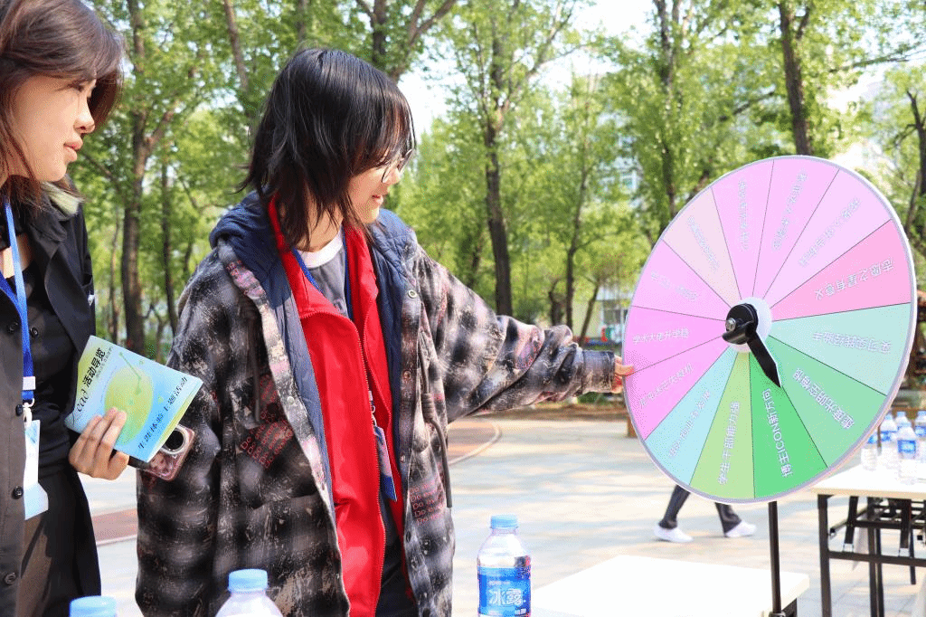 “运筹帷幄”环节中,学生们转动能力大转盘,了解职场基本能力。