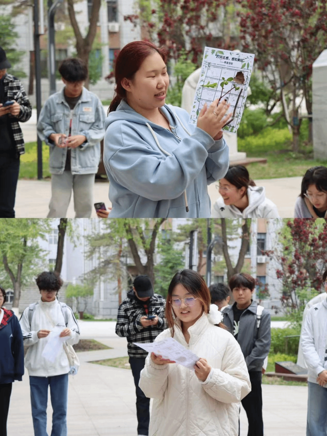 5月21日,学院举办“春野寻踪・聆听春语” 校园寻宝活动。活动中,参与者漫步于校园 “大医之路”,通过视觉、听觉、触觉、嗅觉、味觉五感捕捉春日细微变化,在小组合作中解读线索、完成任务。活动融入心理学“非评判性觉察” 理念,帮助学生缓解焦虑,在自然疗愈中提升自我认知,增强团队凝聚力。