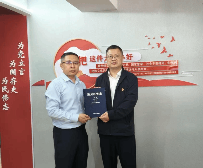 省委史志研究室省情信息处处长房波向人文与管理学院赠送图书《黑龙江省志》