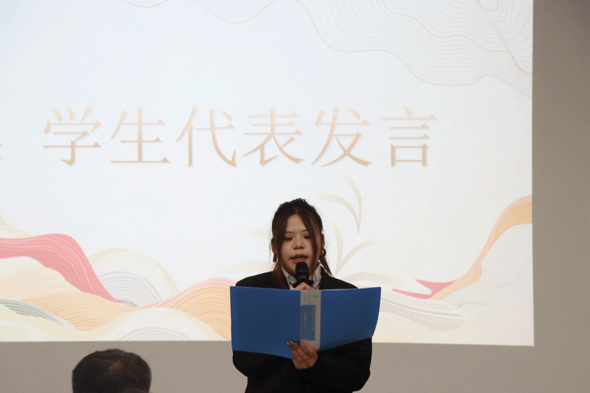 学院党委副书记车志远出席仪式并讲话。他鼓励学生要珍惜学习机会,积极参与班级活动,在实践中锤炼品格、增长才干,努力成长为有理想、敢担当、能吃苦、肯奋斗的新时代青年。