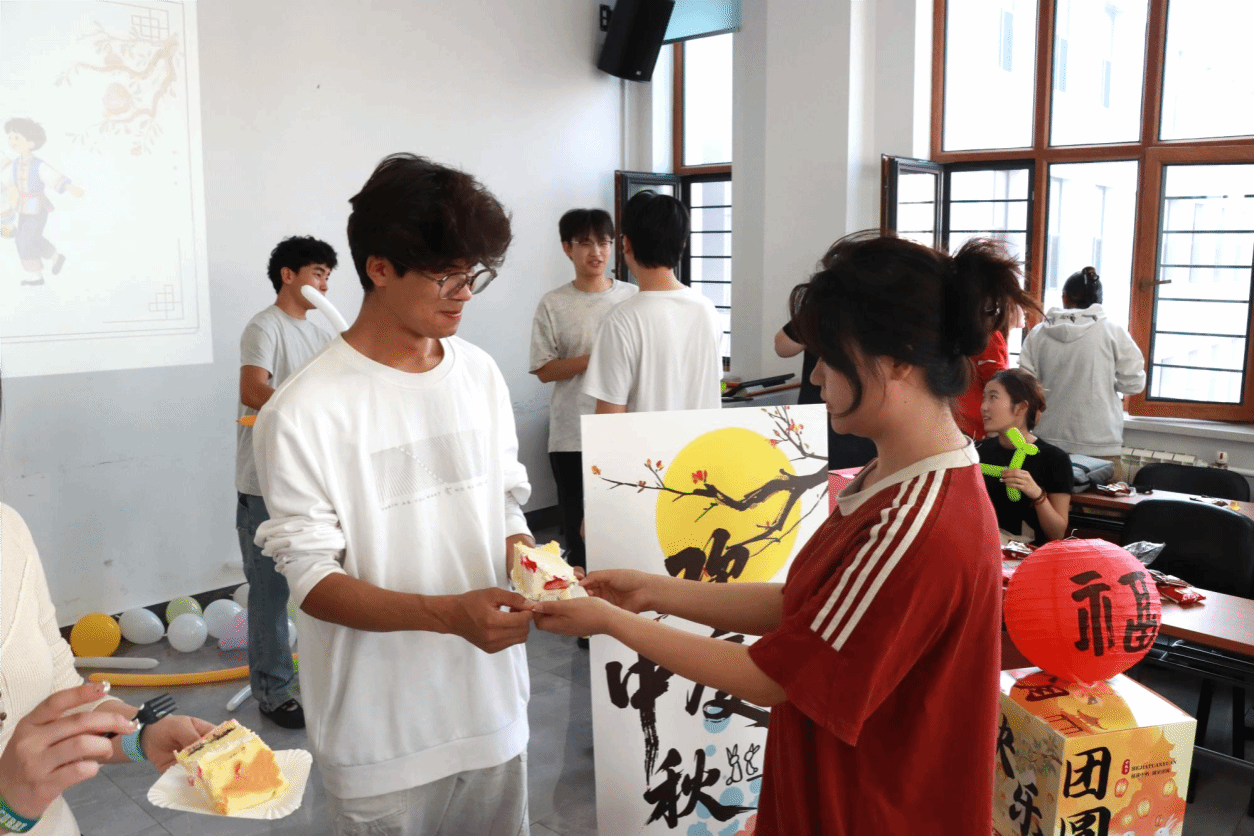 活动最后,大家一起分享印有“一群人、一件事、一条心、一起拼、一定赢”的蛋糕,不仅传递了“中华民族一家亲”的理念,强化了同学