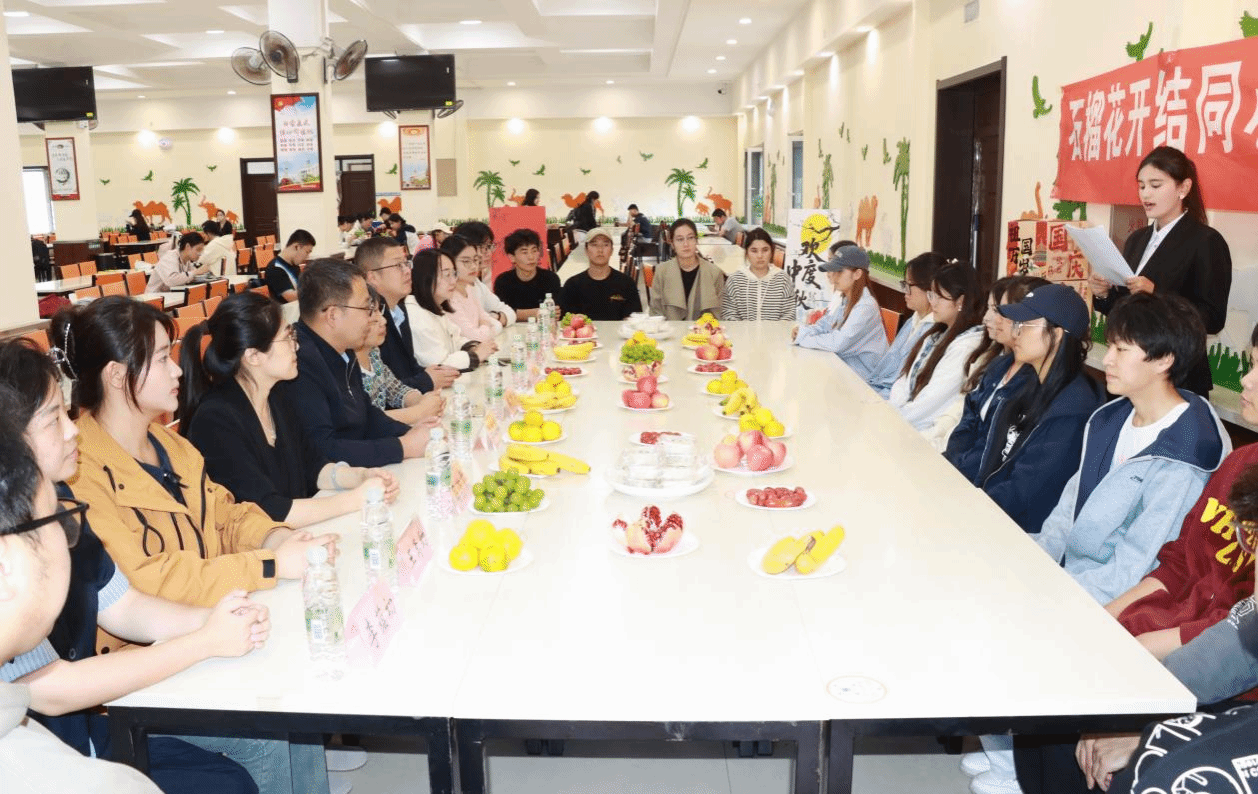 9月30日,在国庆、中秋双节来临之际,为进一步弘扬传统文化,丰富同学们的精神文化生活,学院党委书记韩彦华、院长于钦明、党委副书记车志远、副院长李晓、辅导员老师与各民族同学代表在膳食中心三食堂开展共餐活动。师生在品尝美食的同时,共话情谊,共享家的温暖。